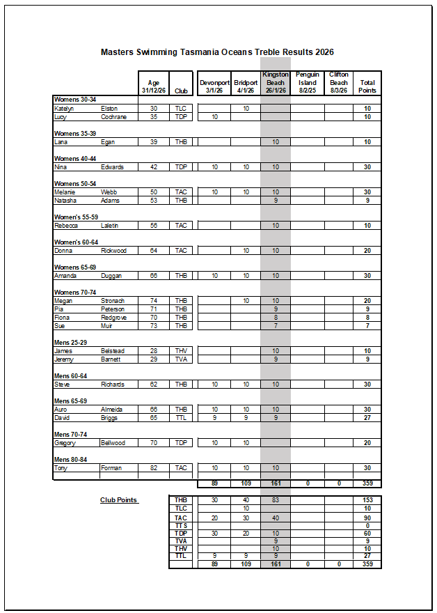 Kingston Beach delivered the goods! With 20 MST members diving into the Midsummer Swim on 26 January. The Oceans Treble leader board is heating up ![]()