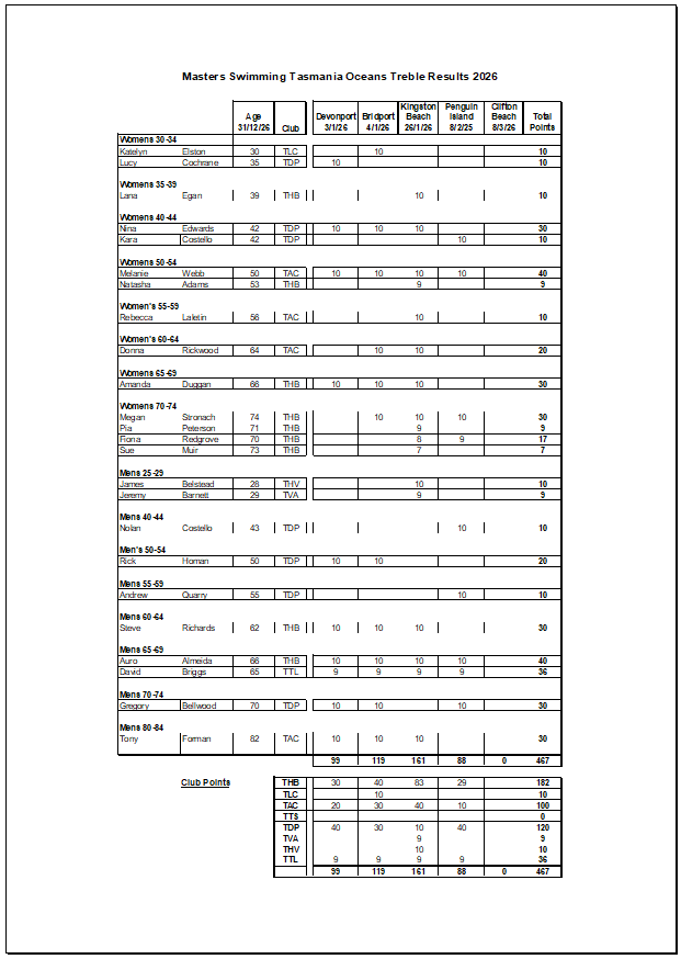 And don’t forget — there’s a perfect warm-up the day before with the Carlton Park Team Challenge (part of the Tasmanian Ocean Swim Series, but not a Treble event). Consider it a dress rehearsal